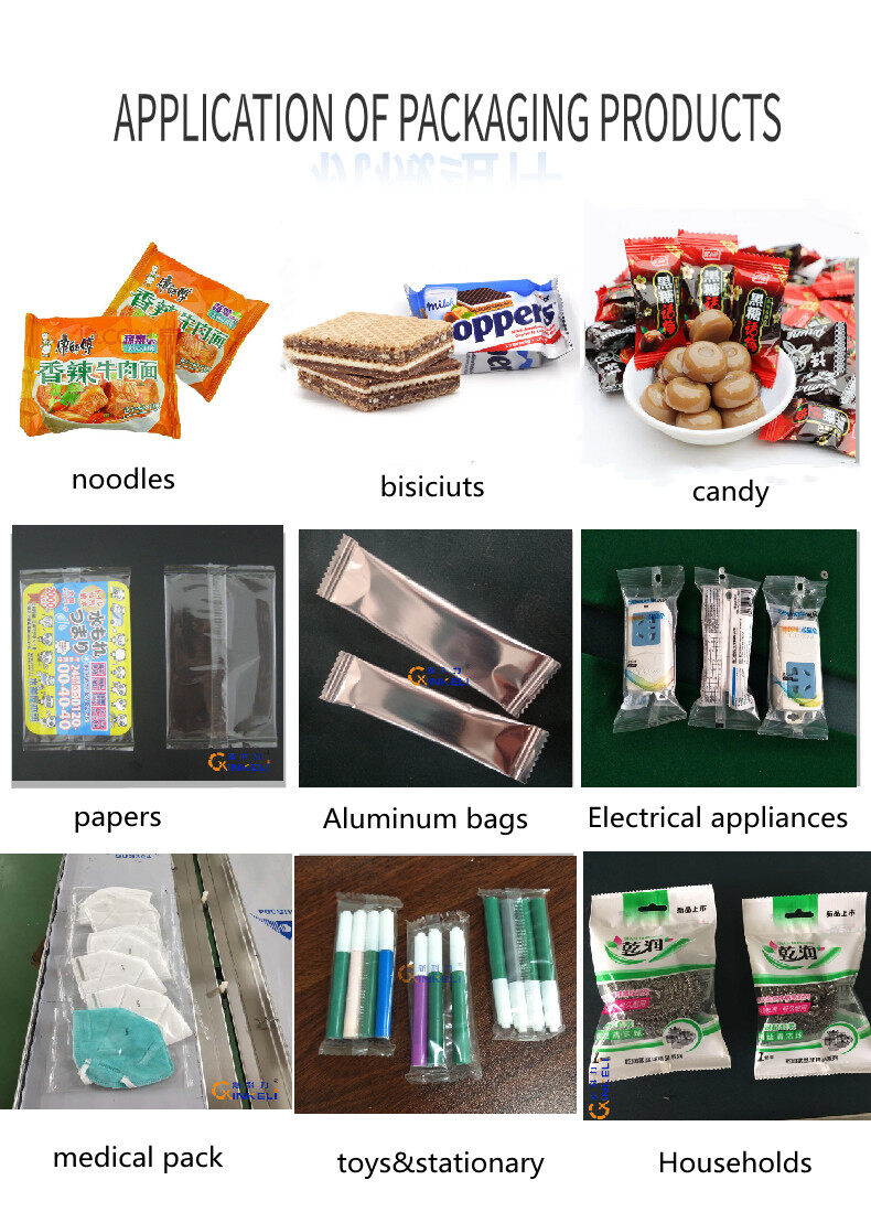 flow wrapper is an classical flow wrapper that offers the widest product size range currently available on a flow wrapper in its class. It suitable for the wrapping of the solid goods with regular shape, such as biscuit, chocolate, long shape candy, bread, Instant noodles, waster ice, ice cream, cake, medicine, commodity, knife and fork, hardware etc.